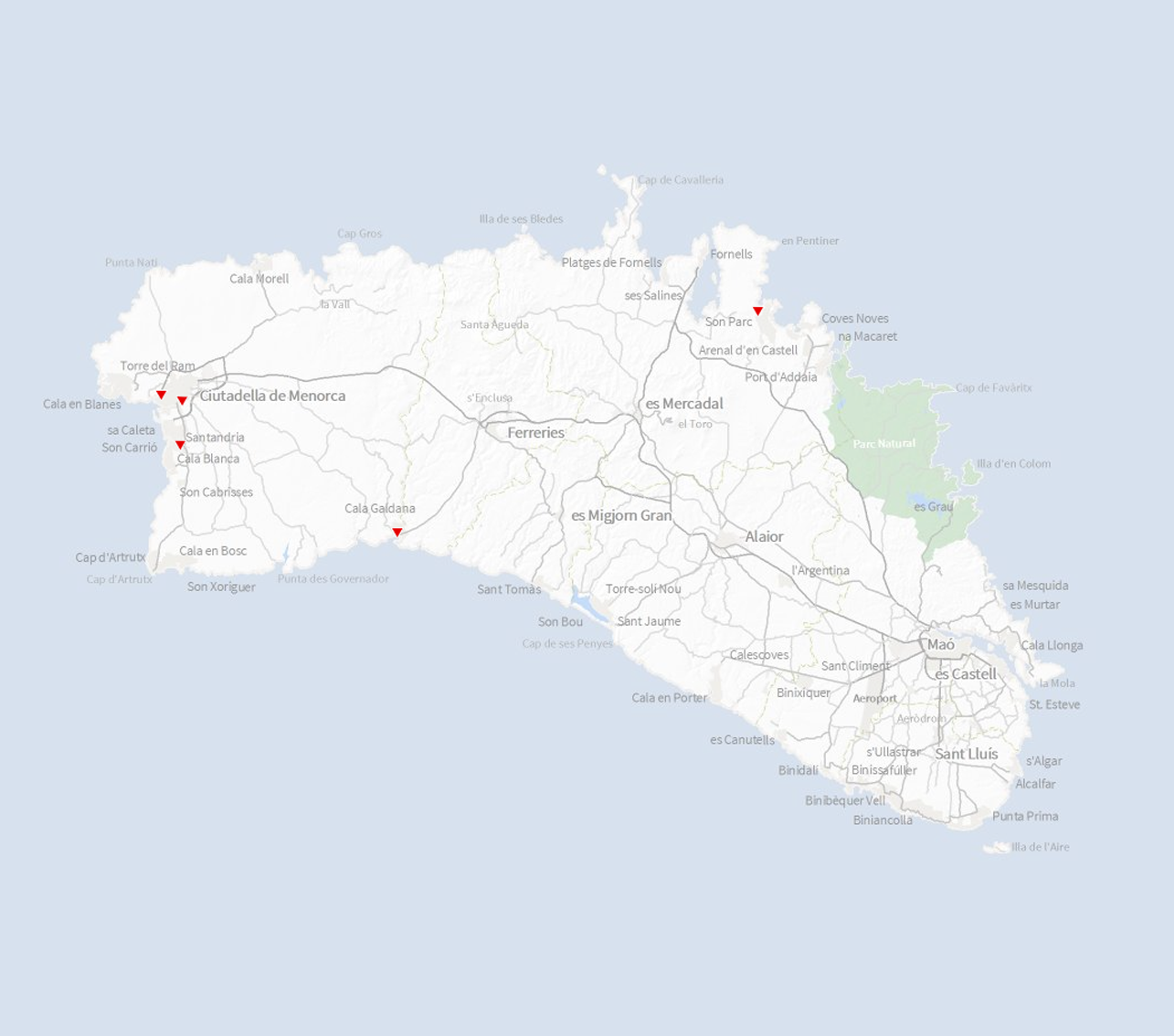 Desembocadura de torrents amb risc d'inundació de Menorca segons el pla territorial insular (PTI). La capa forma part de la sèrie "Riscs" dels mapes de la Norma Territorial Transitòria. És la mateixa que la corresponent al Pla Territorial Insular. Com a base de referència es va emprar la base cartogràfica oficial del Mapa Topogràfic Balear del Govern Balear escala 1:25.000. L'equip redactor del PTI: Ezquiaga Arquitectura Sociedad y territorio S.L.