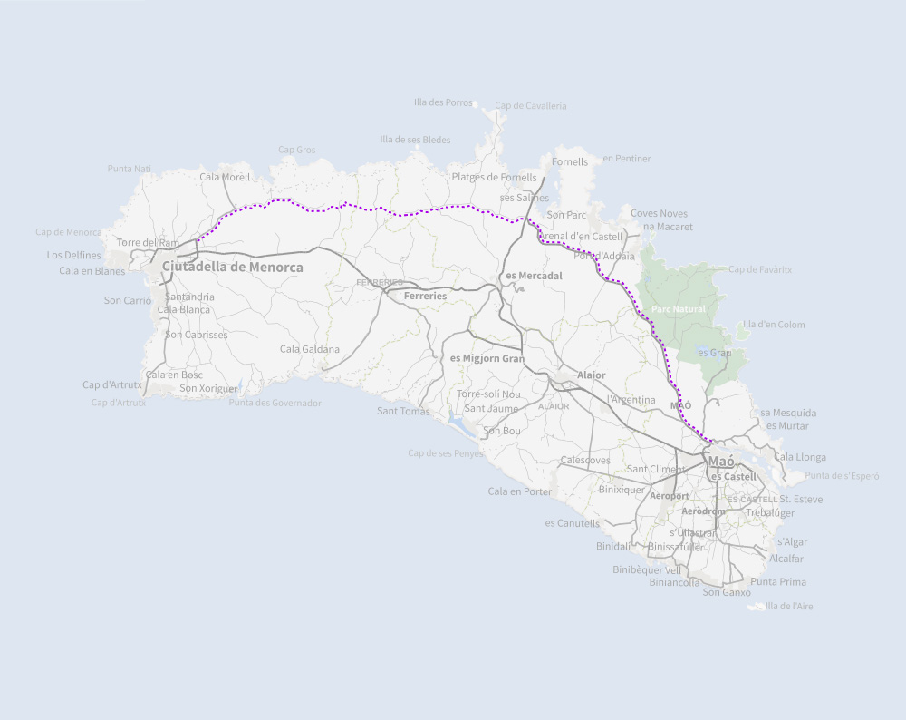 Traçat del camí del Nord. La capa forma part de la sèrie "Sòl Rústic" dels mapes de la Norma Territorial Transitòria. La seva digitalització està basada en les següents consultes: - dades de l'Enciclopèdia de Menorca, tom 10-Història II, pàgina100, edició de l'any 2000. - mapa militar de 1915 - fotografia aèria de 1956 - treball de camp en el tram de Santa Àgueda de Ferreries - plànols i fitxes corresponents a la beca d'investigació de la titularitat dels camins rurals d'accès al domini públic marítim terrestre de l'illa de Menorca (Consell Insular 2000-2001) S'ha treballat sobre el topogràfic i la ortofoto de l'any 2002.