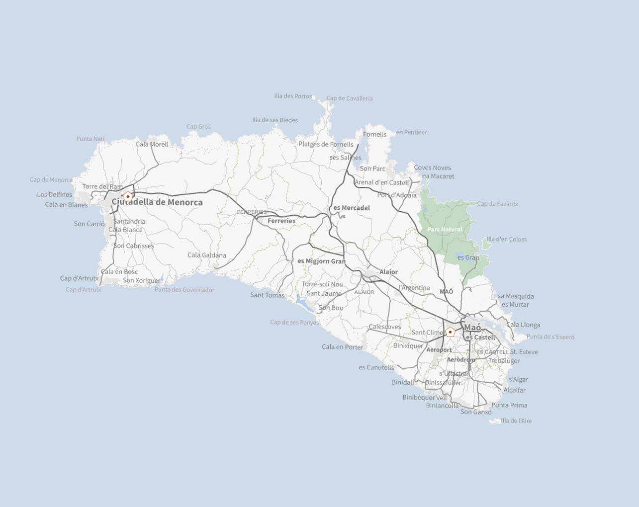 Localització de les platges verges de Menorca. Aquesta capa l'ha creat el Departament de Medi Ambient del Consell Insular de Menorca.
