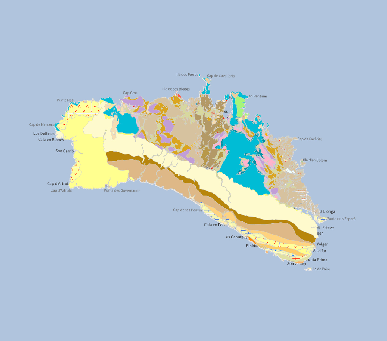 Mapa geològic de Menorca. Escala 1:25000 Aquesta capa es va digitalitzar a l'OBSAM a partir del mapa geològic en paper de l'Instituto Tecnológico GeoMinero de España.