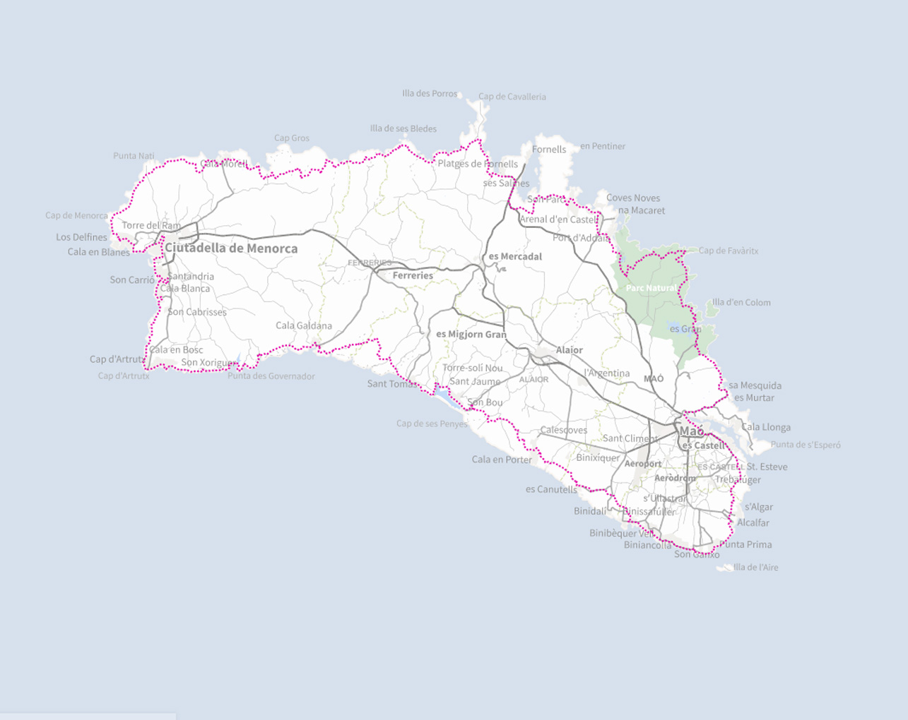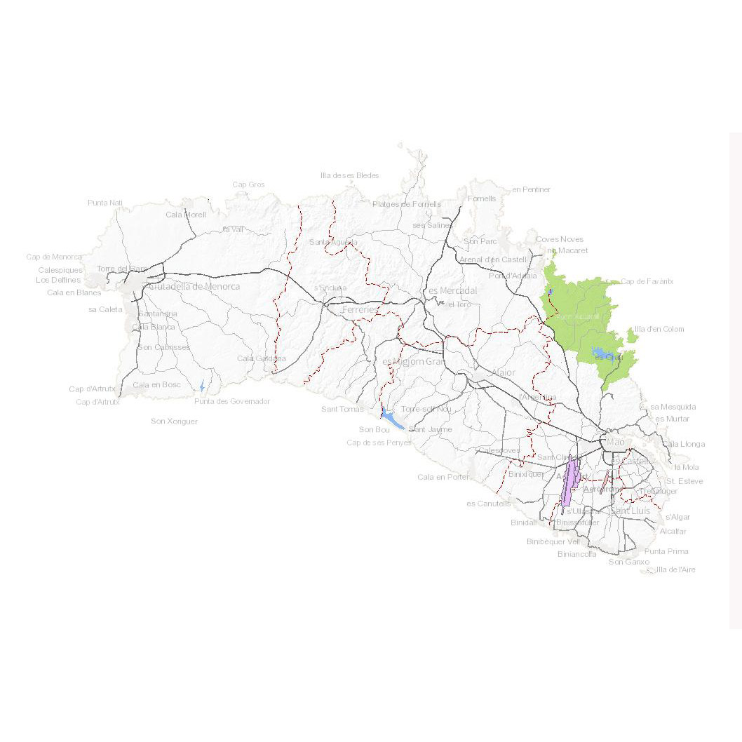 Camí de cavalls previst en el pla territorial insular de Menorca (PTI). La capa forma part de la sèrie de 'Sistema d'assentaments, equipaments i infraestructures' dels mapes d'ordenació PTI.